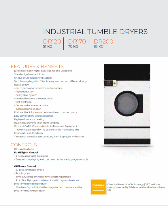 La gamma Alliances di asciugabiancheria presenta un flusso d’aria concentrato e cerchi a cilindro sigillati per garantire il massimo utilizzo dell’aria e il risparmio energetico. Questa prestazione di asciugatura superiore aiuta le lavanderie a massimizzare la produttività.